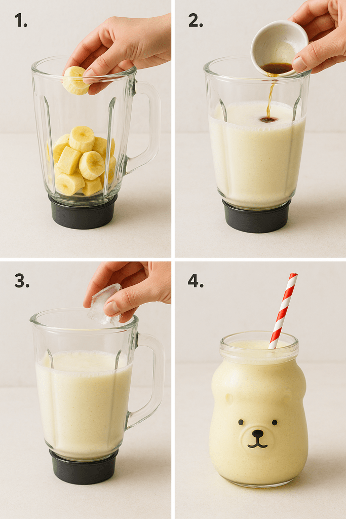 얼음을 넣고 10초 더 갈아 부드럽게 만듭니다. - Pour into a cute bear-shaped cup and enjoy immediately.